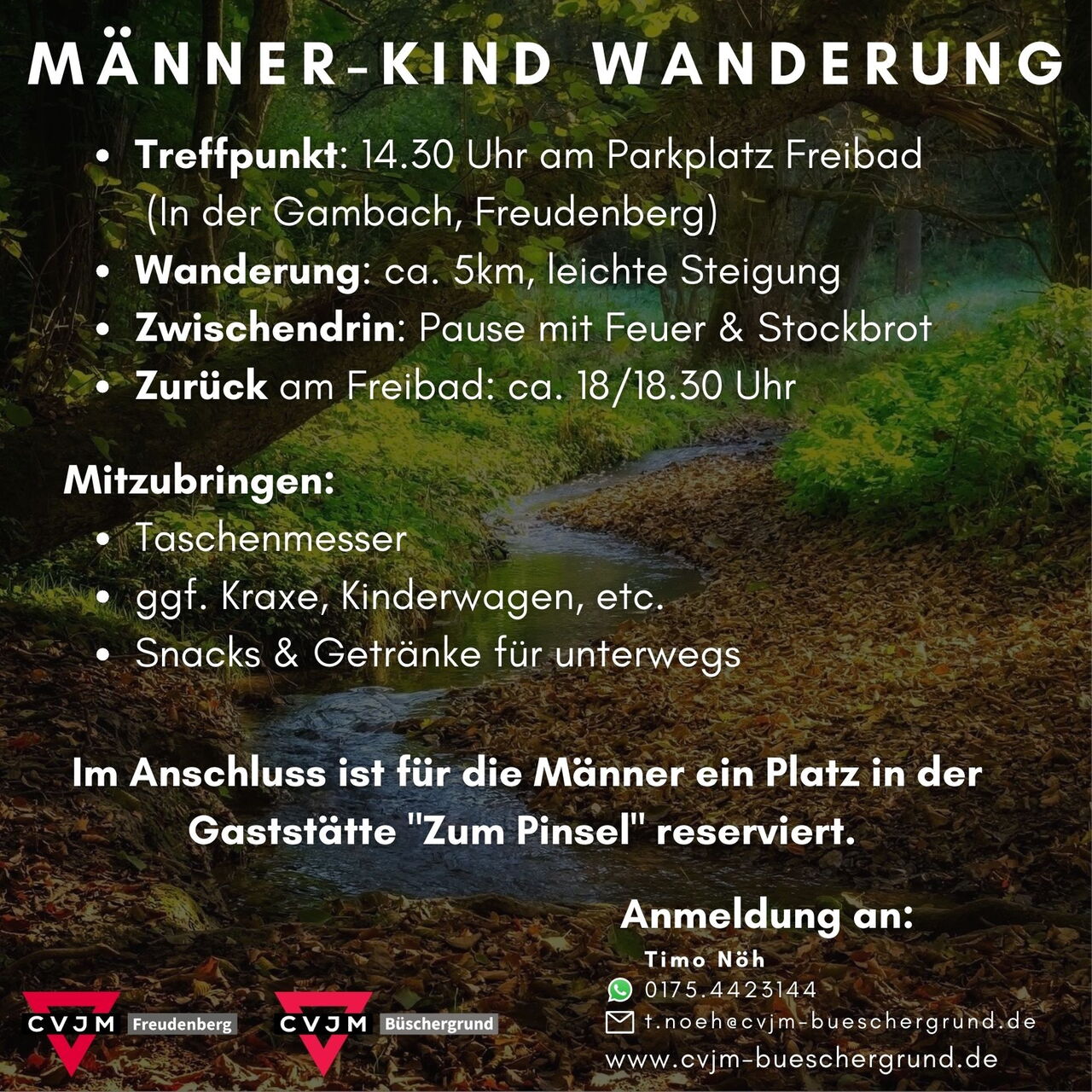 Auch in diesem Jahr bieten wir wieder eine Männer-Kind Wanderung an. An alle Opas, Onkels, Cousins, Brüder und Väter: Packt euch ein Kind ein und macht mit! Wir freuen uns auf einen schönen Nachmittag und natürlich auch Abend!