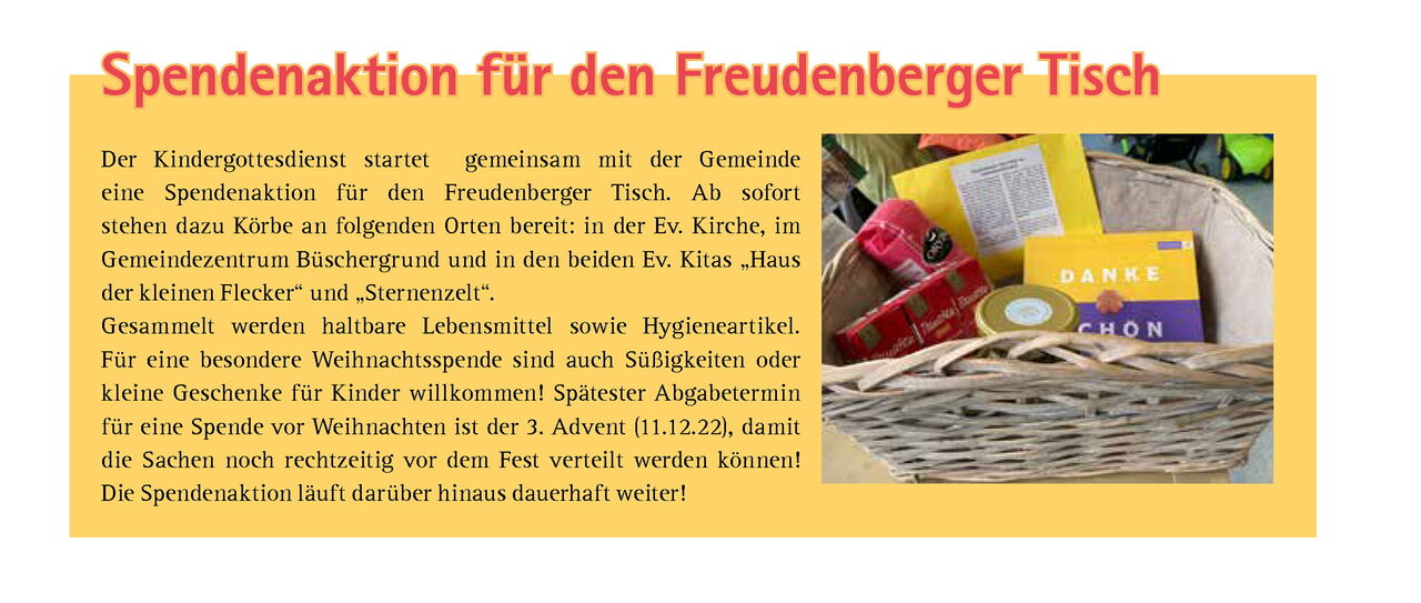 Gemeinsame Sammlung des Kindergottesdienst und der Gemeinde für den Freudenberger Tisch
